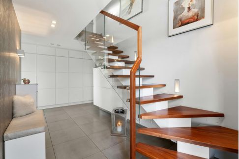 Using stainless steel or wooden handrails with glass gives a perfect blend of tradition and modernity.